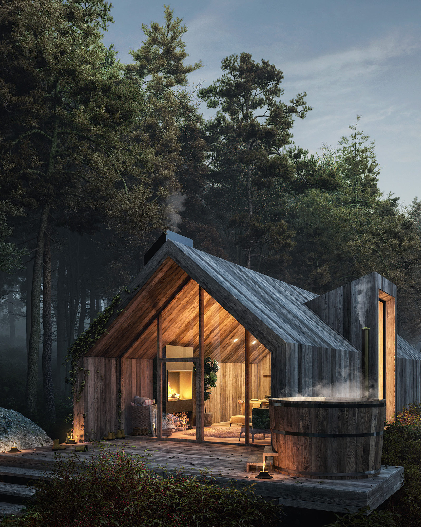 木屋的形狀和顏色設(shè)計(jì)主要是為了模糊外部和內(nèi)部空間之間界限。木屋的設(shè)計(jì)旨在提供一個(gè)...